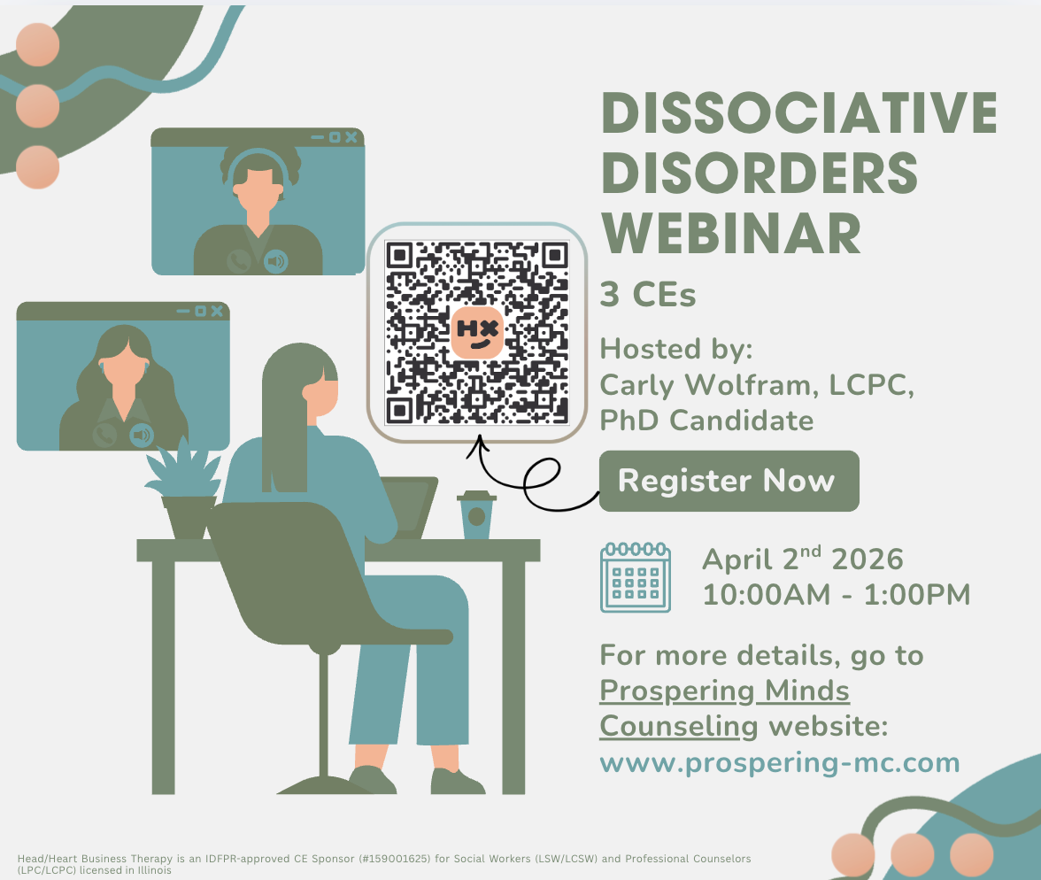 Head/Heart Business Therapy is an IDFPR-approved CE Sponsor (#159001625) for Social Workers (LSW/LCSW) and Professional Counselors (LPC/LCPC) licensed in Illinois